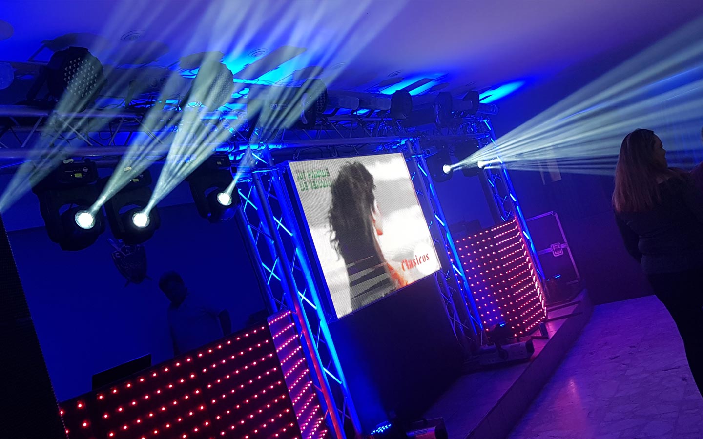 Bocina, 4 cañones LED, 5luces robóticas y DJ |